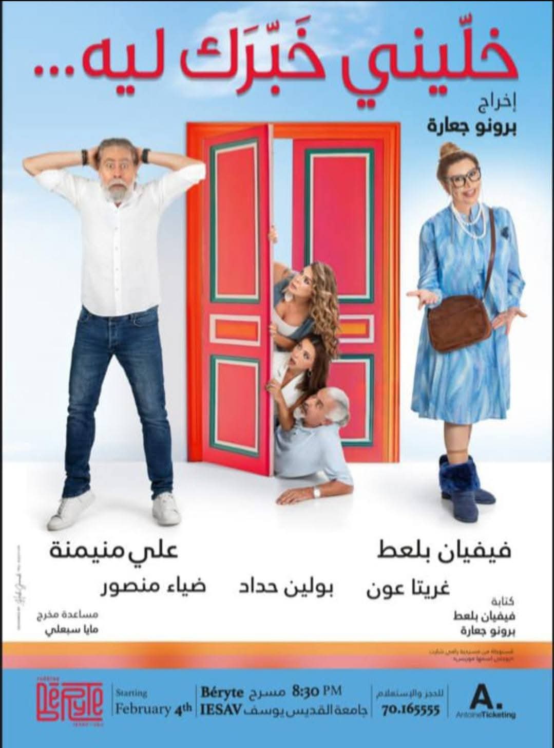 بدأت مسرحية “خلّيني خبرك ليه” عروضها على مسرح بيريت، بتوقيع إخراجي لبرونو جعارة وتأليف مشترك بينه وبين فيفيان بلعط، لتدخل بنا عالم كوميديا الفودفيل؛ ذلك اللون المسرحي الخفيف السريع الإيقاع، القائم على المفارقات وسوء الفهم والمبالغات الطريفة، حيث تتشابك الأحداث وتتعقّد ثم تنفرج بسلاسة، فيضحك المشاهد من قلبه وهو يلاحق لعبة الأبواب المفتوحة والمغلقة، والدخول والخروج في توقيت محسوب. العمل صالح للعائلة لكل من تجاوز العاشرة، يضحك المشاهدين، نعم، لكنه لا يخلو من مشاهد مبالغ فيها عن قصد، لغاية درامية تكتشفونها عند حضور العرض. منذ اللحظة الأولى تلتقطكم بداية نابضة وحيوية من الجمهور؛ غريتا عون تبدع بحضورها وأدائها المتقن، وعلي منيمنة يثبت مرة جديدة أنه ممثل قادر على خلق هوية خاصة لكل شخصية يقدّمها، ينوع في مسيرته بثقة ويستحق الجوائز، حتى وإن تأخر المنتجون والقيمون على المهرجانات في تكريسه كنجم صف أول، إلا أنه بدأ يحصد اليوم ثمرة تعبه. أما فيفيان بلعط، الكاتبة والممثلة، فتختار هنا الدور الكوميدي البحت، فتنجح فيه بذكاء لافت، في الإفيهات والتفاصيل والحركات، نصّها يتصاعد تدريجياً قبل أن يختار نهاية خفيفة سهلة، يتقبلها الصغير قبل الكبير.