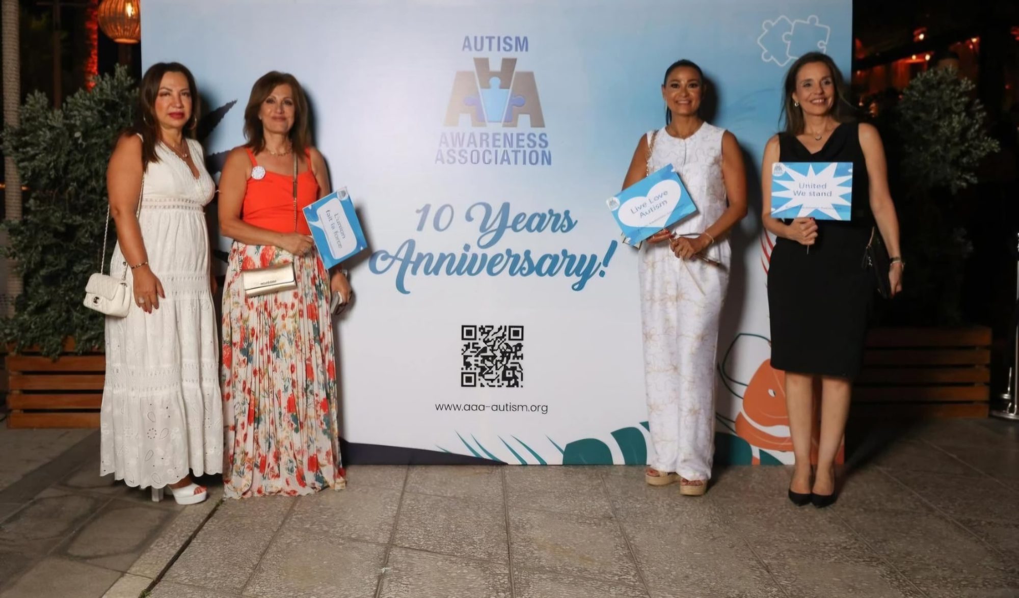 في عيدها السنوي العاشر، احتفلت جمعية الأهل للتوحّد بعشر سنوات من الإنجازات والعطاءات في حفل عشاء خاص أقيم في “بار دو بورت” في بيروت. جمع الحفل لفيفاً من الأهل والأصدقاء الداعمين للجمعية والإعلاميين والأطباء، إضافة إلى رئيسة الجمعية غادة الحايك مخول وأعضاء الهيئة الإدارية، كوليت الحايك مسعد، ماريا بستاني أبي نصر، كريستينا خوري أبي رميا، كوستنتينا غزاوي والدكتورة كاتيا نمر.